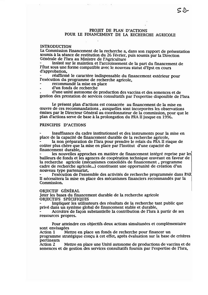 DRAFT ACTION PLAN FOR THE FINANCING OF AGRICULTURAL RESEARCH