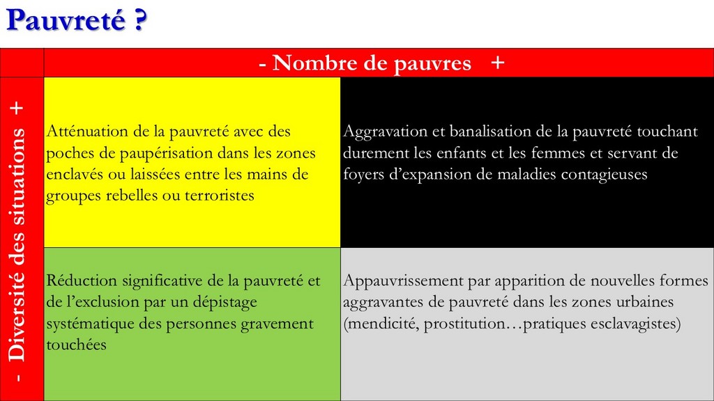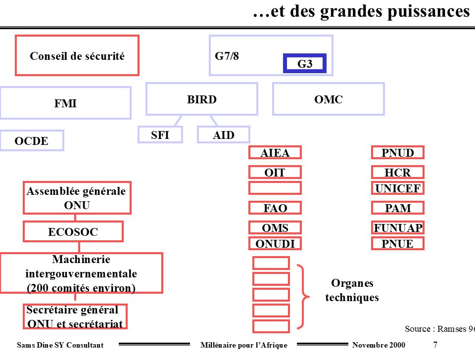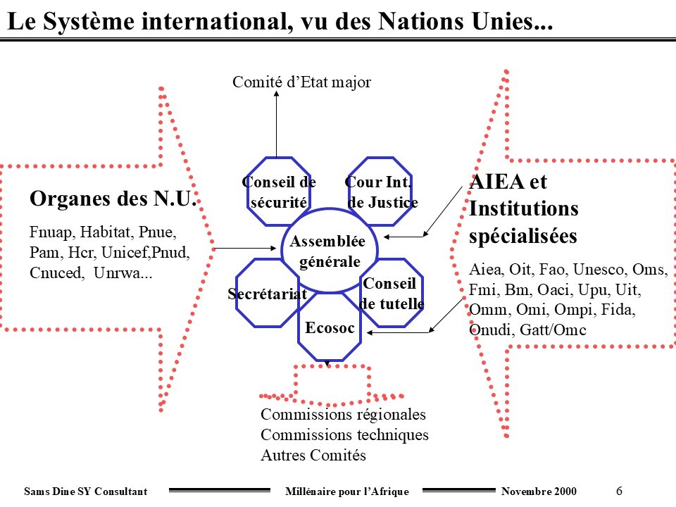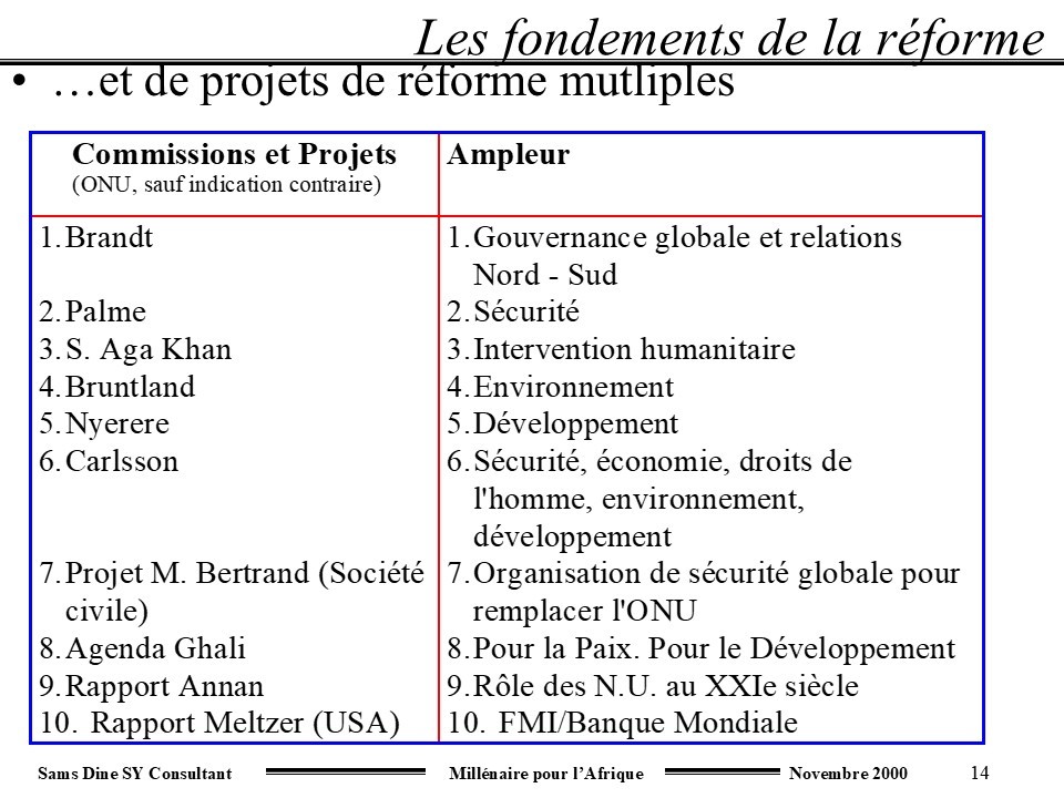 Au tournant des années 2000, le rôle des Nations Unies au XXIe siècle est au cœur d’une intense réflexion, en particulier face à « tous ces défis » résumés en un mot par le Rapport Annan : mondialisation . C’est ainsi que la "Déclaration du Millénaire de l'Onu" adoptée lors de la session plénière du 08/09/2000 la réduit à une seule et unique forme. Cette approche révèle toute la difficulté à s’inscrire dans une démarche prospective.