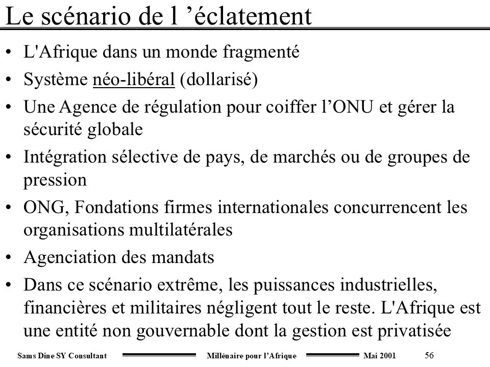 * Sams Dine Sy Retraité. Facilitateur en Science Prospective, Constructive & Transformative