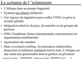 Tout se passe comme si l'ONU n'a pas anticipé le premier scénario " atrophie" alors que dès 2001 plusieurs signaux le rendaient plus visible que les autres. Soit la culture prospective est complètement défaillante au sein de l'ONU. Inacceptable au regard de tous les investissements réalisés pour y déployer les capacités d'analyse de politique et de prospective. Autant déclarer obsolète toute la "machinerie ou bureaucratie intergouvernementale" omniprésente dans l'organigramme de l'organisation. Soit l'Onu est entièrement au service du régime de domination absolue par Hegemon dont l'économie - toujours dans ce scénario - est en situation d'atterrissage en catastrophe, même si pour les groupes d'intérêt ayant confisqué tous ses attributs de souveraineté, il ne s'agit que "benign neglect, l'essentiel étant une "Onu coiffée". Et si les autres membres étaient de fait réduits au statut d'états virtuels ?