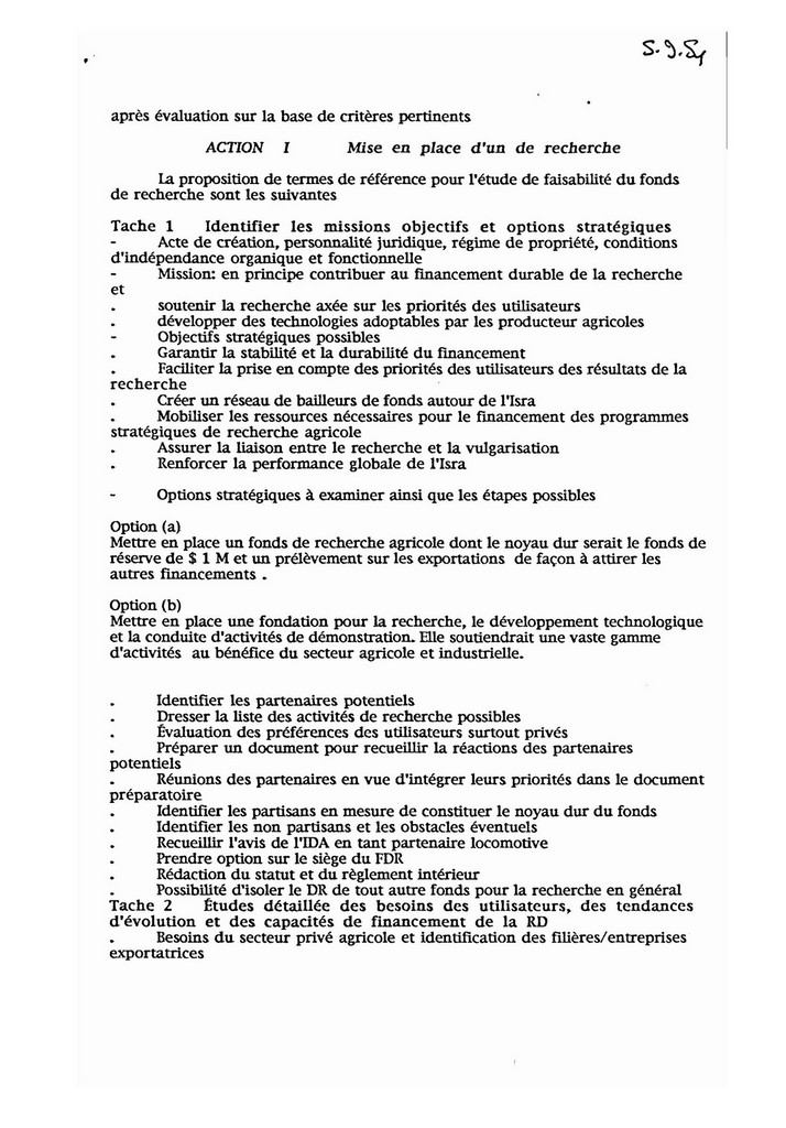 PROJET DE PLAN D’ACTIONS POUR LE FINANCEMENT DE LA RECHERCHE AGRICOLE