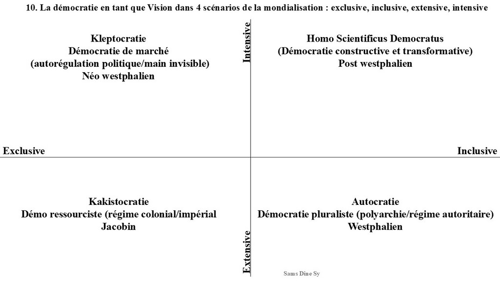 The risk of such a survey should not be underestimated when so many countries used to serving as a reference find themselves at the same level as the others when they are at most in one of these categories: market democracy, epistocracy, autocracy, polyarchy... They would be tempted to invoke once again the "war against democracy" argument. The fascination exerted on them by "homo scientificus divinus" will do the rest as long as its "cameralist science" version still remains at the origin of the Westphalian state in force everywhere. Including in its neo and Jacobin version.